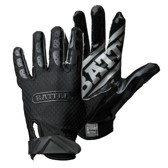 The brand-new Battle Triple Threat football receiver gloves are designed to elevate your game to the next level. The hand backing is woven in a checker pattern to deliver increased durability and flexibility. New an improved UltraTack lasts longer and allows a stronger grip on the football.
