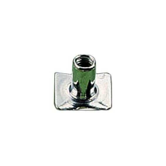 Medium T-Nut for Football Chinstrap Attachment. The Medium T-Nut is used with a snap post to snap in a chinstrap buckle. The snap post screws into the T-Nut, which allows the player to snap on the chinstrap to the football helmet. Sold in packs of 4 pieces.