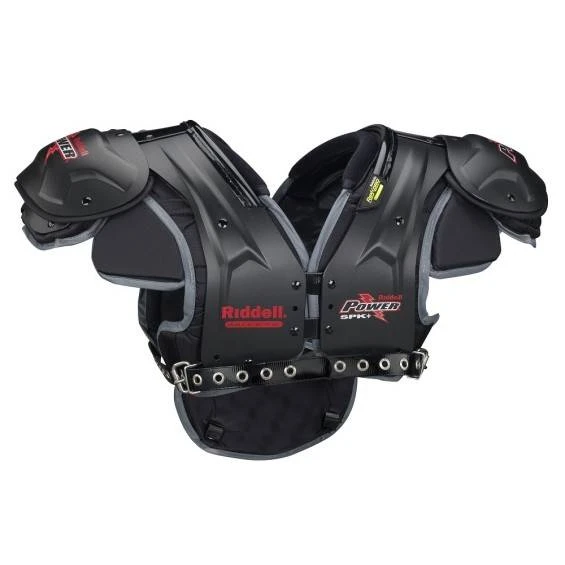 Replacing the Riddell Power SPK RB/DB, the SPK+ RB/DB features Riddell RipKord Technology�, the STAC shoulder system, swivel fronts, an attached back plate, biothane STAC straps and belts, a flat pad design, the air management liner system, removable/adjustable bodies, stainless steel hardware, and velvet collars.
