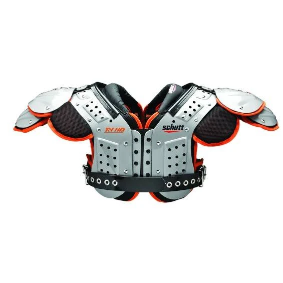 With pro-level features and a design made for high school players, the Schutt XV HD Adult Football Shoulder Pads – All Purpose are the latest in Schutt’s popular XV line. A newly-designed, high-performance arch minimizes the weight and still delivers the same impact zone protection. The pads include a higher density EVA foam that allows heat and sweat to escape, keeping your body cool and allowing you to perform at a high level. The epaulets and caps are positioned and sized to eliminate grab points and allow a maximum range of motion. The clavicle channel system protects your shoulders and absorbs impact around the AC joint.